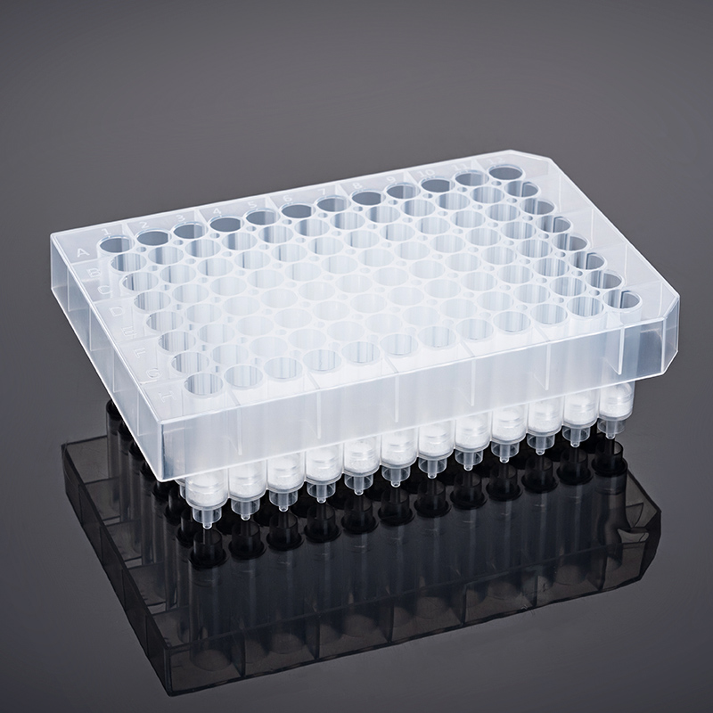 Introducing our 96-Well Filtration Plates, designed for high-throughput DNA or RNA isolation with unparalleled efficiency and precision. Engineered with cutting-edge technology, these plates enable simultaneous processing of up to 96 samples with 800 uL capacity, which drastically reduces processing time while maintaining exceptional nucleic acid capture efficiency. Compatible with diverse sample types and featuring precision-molded wells and advanced filtration technology, our filtration plates ensure uniform sample distribution and reproducible results, streamlining laboratory workflows and minimizing hands-on time. With robust construction, these plates are the ideal solution for genomic DNA isolation and a range of other applications, empowering researchers to achieve reliable and consistent results in nucleic acid research.
